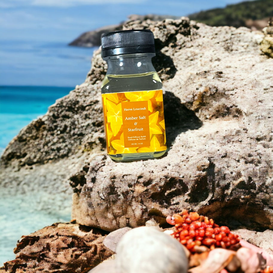 Amber Salt & Starfruit Reed Diffuser Refill: Embrace the Essence of Coastal Euphoria